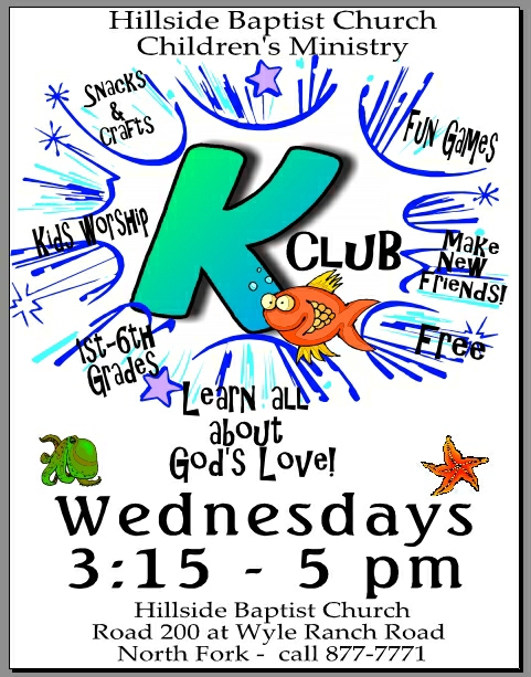 Children: In addition to children's activities on Sunday mornings, we have Kids' Fish Club on Wednesdays.